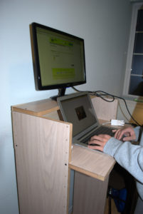 honeycomb panel student standing computer workstation